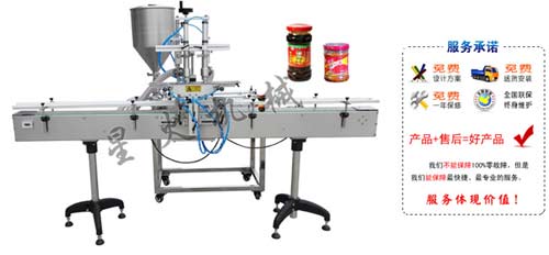 雙頭全自動辣椒醬灌裝機是星火公司專門針對香辣醬產品進行定量灌裝的一種新型灌裝設備,在使用上分為自動香辣醬裝機和半自動香辣醬裝機兩種,其中半自動機型需要人工放瓶、可以選擇AUTO灌裝和FOOT灌裝,然后結合臺式旋蓋機旋蓋、半自動貼標機進行貼標,而自動雙頭辣椒醬灌裝機一般是配合自動旋蓋機、漿糊貼標機等設備一起使用,從而構成一套灌裝流水線。